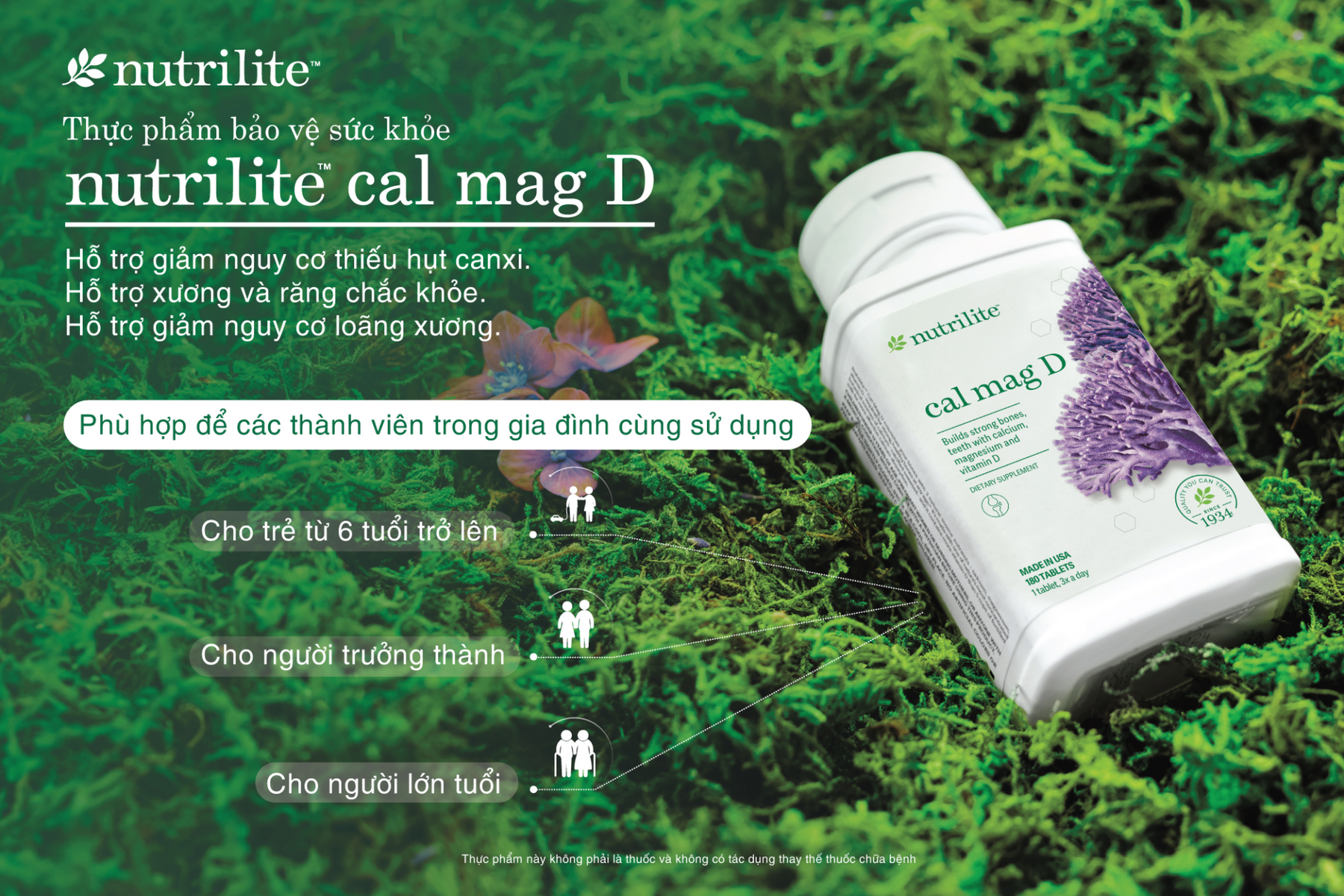 Sản phẩm được thiết kế với tỷ lệ vàng 2:1 giữa canxi và magie, giúp cơ thể hấp thu và sử dụng khoáng chất hiệu quả, ngăn ngừa còi xương, loãng xương. Nguyên liệu được trồng tại trang trại hữu cơ Nutrilite, đảm bảo chất lượng, an toàn và bền vững.