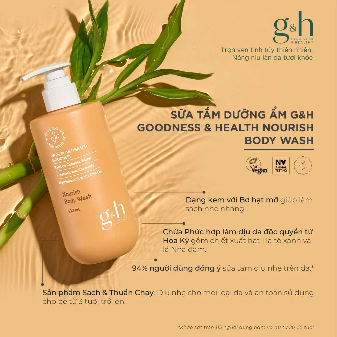 Sự thành công của sữa tắm G&H nằm ở bảng thành phần “vàng” được chắt lọc từ thiên nhiên, giúp bảo vệ da tối ưu.