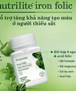Nutrilite Iron-Folic là một dạng viên uống bổ sung sắt và axit folic, được thiết kế dành riêng cho những người gặp khó khăn trong việc hấp thu các dưỡng chất này qua chế độ ăn uống hàng ngày. Thành phần chính của sản phẩm gồm sắt hữu cơ dạng gluconate và fumarate kết hợp cùng axit folic, giúp hạn chế tác dụng phụ thường gặp khi sử dụng các dạng sắt tổng hợp, đồng thời tối ưu hóa quá trình chuyển hóa và hấp thụ.